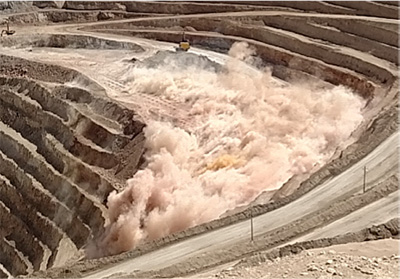 A fun one was when I got to see what it looks like when 83 tons of ANFO (ammonium nitrate, fuel oil) explosive is used to blast an acre of rock to a depth of 35 feet. That was at a gold mine; I was there to give some training and they were doing a blast in the afternoon of the first day of class. I was a mile away – the closest we were allowed to approach – and when the shot took place, I could see the surface of the rock start to ripple as dust shot out of the boreholes, blanketing the mine.